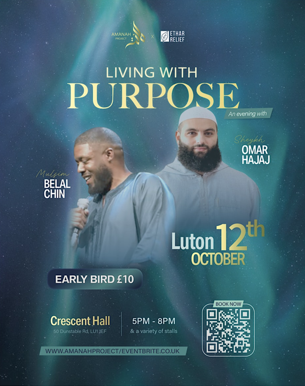 Events October 2025 Knowing the Prophet ﷺ Further Details & Booking The Quran Summit – A Transformative Quranic Journey Further Details & Booking Living with Purpose Further Details & Booking CPD Muslim Mental Health & Wellbeing First Aid – Imams & Community Leaders Further Details & Booking Islamic Productivity Further Details & Booking