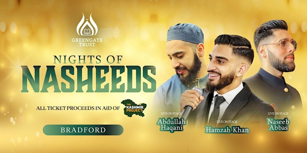 NIGHT OF NASHEEDS Join us in a memorable night of the UK’s most talented Nasheed artist Date and time Friday, September 27 · 6 – 10pm GMT+1 Location Pearl Banqueting Manningham Lane Bradford BD1 3EA Book Here